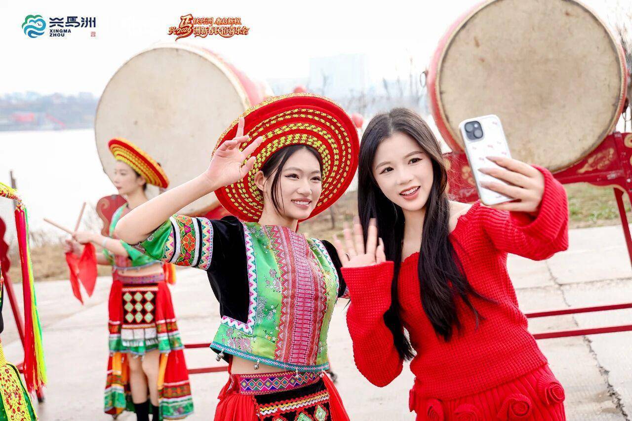 黎明的湘江还笼着一层薄雾,兴马洲的渡口已是东谈主声悠然。雄狮跟着饱读点腾踊翻腾,花瑶阿哥阿妹的歌声随风飘来,还没踏上洲岛,那股子热腾腾、暖融融的年味儿,就已扑了个满怀。